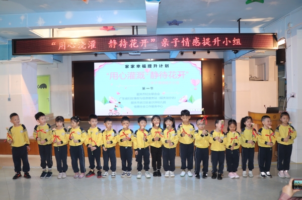 家庭是人生旅程的起点,是人生的第一所学校。为人父母不需要考试,却需要学习,学习合适的沟通方法,促使亲子沟通顺畅,可以增强家庭的亲密关系,有效地深入了解孩子,与孩子共同建立一个阳光积极的家庭氛围。5月13日上午,结合母亲节和国际家庭日的契机,韶关市妇联、广东省妇女维权与信息服务站(韶关站分站)在韶关武江区金沙洲幼儿园开展“家家幸福提升计划”系列——“用心浇灌 静待花开”亲子情感提升小组第一节开组活动,共有18组家庭38人参加。