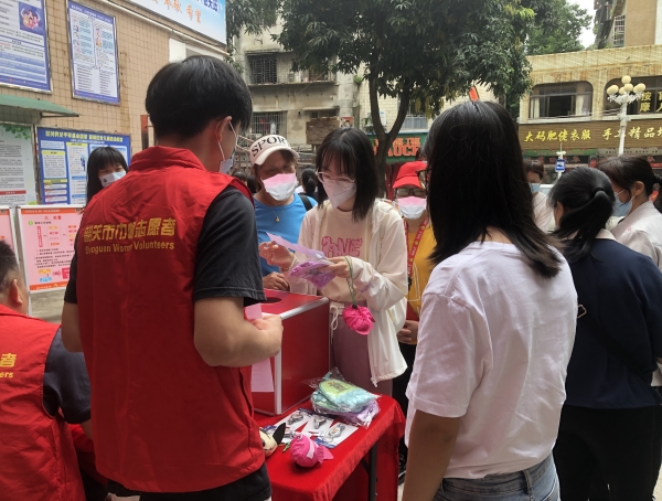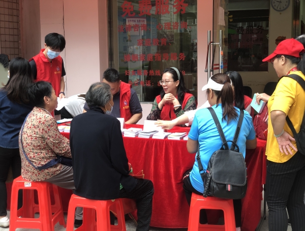 5月24日上午,在广东省妇女维权与信息服务站(韶关站)大院内开展的“美好生活 民法典相伴”韶关市妇联户外宣传咨询暨主席服务日活动上,市妇联党组成员、副主席彭跃勤和律师志愿者、工作人员一起,在活动现场为群众提供普法宣传和咨询服务。