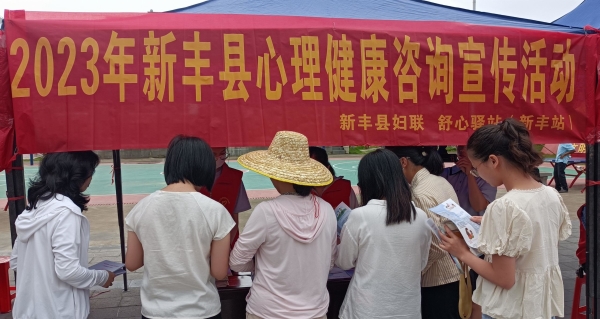 为深入贯彻落实党的二十大精神,提升广大妇女儿童及家庭对心理健康问题的关注,普及心理健康知识,消除对寻求心理咨询服务的误解,培养妇女儿童积极向上的心态,5月25日,舒心驿站(新丰站)开展了一场心理健康知识户外宣传活动。