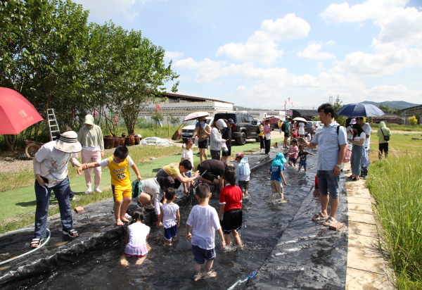 第二个环节是古法捕鱼环节。孩子们大显身手,和小鱼进行追逐大赛,父母们在水池边或观战,或指挥,或帮忙捞鱼,现场充满着欢乐的气氛,一条条鲜活的小鱼在水池穿梭,似乎想要看看谁才是捕鱼达人。