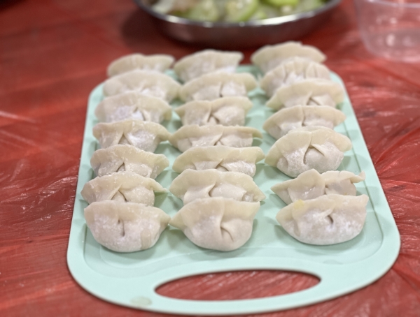 活动最后一个环节是包饺子,在工作人员的帮助下,孩子和家长们一起动手包饺子,不一会盘子里就摆满了圆润的饺子。