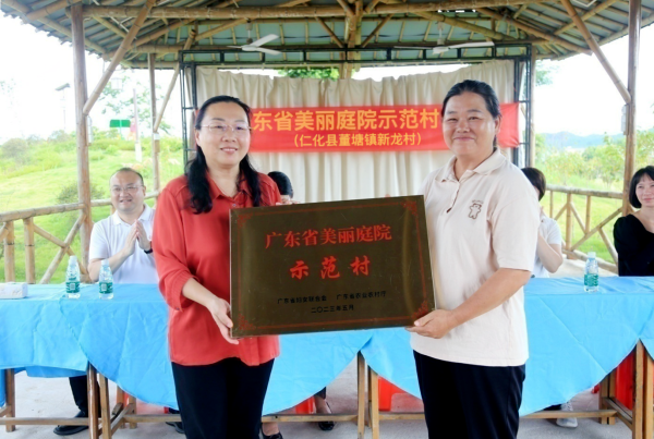 随后,调研组来到董塘镇新龙村和妇女群众亲切座谈,座谈中汪波表示,希望新龙村的妇女姐妹们继续发动乡邻积极主动参与“美丽庭院”创建活动,共建美好家园,并现场进行了广东省“美丽庭院”示范村和广东省“美丽庭院”授牌仪式。