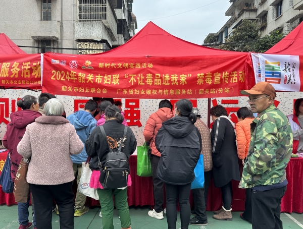 为进一步普及禁毒知识,加强社会禁毒宣传力度,加深人们对毒品危害的认识,提高社会对毒品的警惕,促进全社会的禁毒意识和行动,1月3日,韶关市妇女联合会、广东省维权与信息服务站(韶关站)在浈江区法治文化主题公园开展了“不让毒品进我家”禁毒宣传活动,现场吸引了近300人参加。