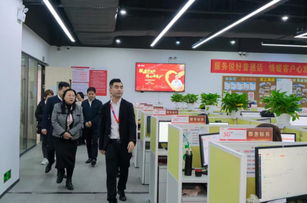 宣讲结束后,韶关市妇联汪波主席一行来到中国联通智慧客服南方中心、韶关联通5G?数字化创新体验中心开展一线调研,实地了解韶关联通发展历程、企业文化,考察中国联通在智慧客服、数字政府、智慧文旅、智慧医疗、工业互联网、智慧农业等领域的工作成效,对中国联通在支持韶关经济社会发展方面做出的突出贡献表示肯定和赞赏,鼓励韶关联通继续努力,以数智赋能助力韶关市高质量发展。
