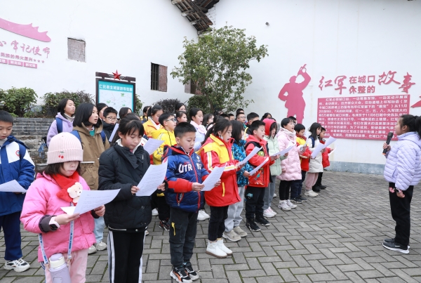 “满目青山埋忠骨,革命精神励后人”。寒风中,铜鼓岭红军烈士纪念园内安静肃穆,铜鼓岭红军烈士纪念碑巍然耸立。孩子们手捧菊花,拾阶而上,沿着纪念碑缓步绕行,向英雄烈士敬献鲜花,致以崇高的敬意和深切的悼念。在宣讲员的带领下,孩子们参观了红军长征粤北纪念馆、重温红军长征在粤北突围的光辉历史,在红军街上追寻红色记忆、近距离感受历史战火情景,齐心体验长征主题游戏、用心绘制红军长征线路图,最后孩子们在红军长征休整地高唱《红星歌》,抒发内心对革命英雄的崇敬、对党和祖国的热爱。