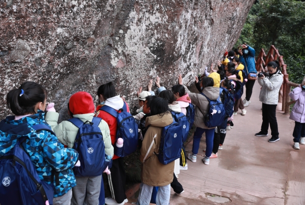 粤北0度的天气下,孩子们不畏严寒,带着对自然的好奇,到世界自然遗产地——韶关丹霞山进行户外实践考察。孩子们深入丹霞山,充分打开五感,探究丹霞地貌奇观、与研学导师一起调查丹霞山的孑遗植物和濒危珍稀植物,通过丹霞山地质博物馆知识闯关、沉积岩实验、枫香果吊坠制作等趣味活动,沉浸式体验丹霞山之美。
