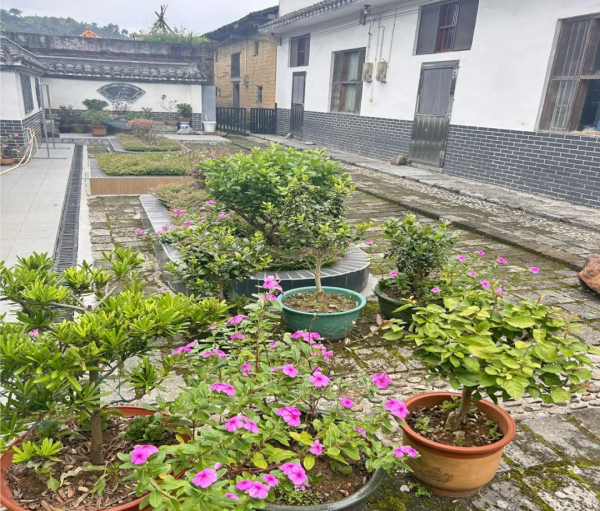 陈有道家庭热衷于园艺,在自家庭院、门前、路旁等闲置空地都栽满了花草,庭院座凳摆放错落有致,庭院整体布局美观舒适,规划具有一定的“艺术性”,院落景观与邻里空间不仅充分体现出家庭文化和地方特色,而且还体现了中国传统园林的“借景”与“对景”手法。它不仅是居住空间的延伸,更是心灵的栖息之所。