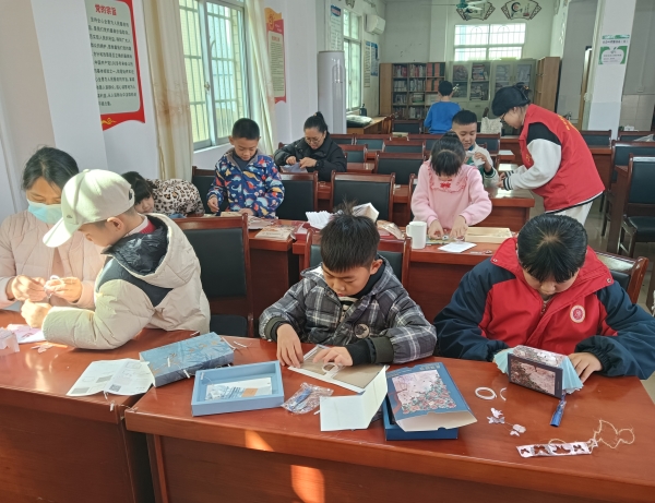 活动现场,志愿者为小朋友们送上书籍《中国神话故事》,亲子们共同沉浸在“燧人氏钻木取火”、“嫦娥奔月”等神话故事中,孩子们听得津津有味,仿佛穿越时空,与故事中的主人公共同踏上了古代神话的传奇之旅。随后的有奖问答环节,大家纷纷举手发言,积极参与。在制作手工书灯的温馨时光里,家长与孩子大手牵小手,默契配合,不一会儿,一盏盏精巧别致的书灯制作完成,孩子们脸上洋溢着满满的成就感。