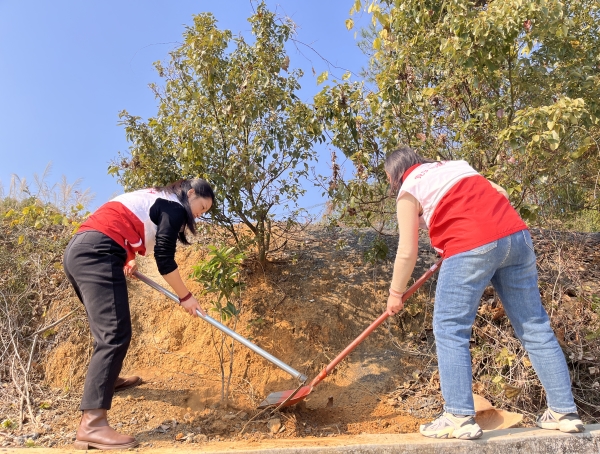 本次种植的“巾帼林”占地2亩,共种植龙眼、荔枝等果树60棵。一株株新栽种的树苗迎风挺立,“巾帼红”与“生态绿”相映衬,形成了一道靓丽的风景线。