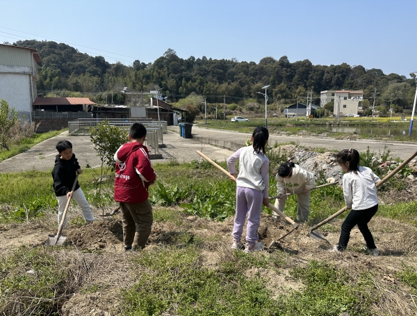 孩子们兴奋不已,迫不及待地拿起工具,和家长们一起投入植树行动中。亲子家庭分工合作,配合默契。小朋友们双手紧握小铲子,一下一下地将土铲起,尽管小脸憋得通红,额头上渗出细密的汗珠,但手中的动作却没有丝毫停歇。家长负责提水,一趟又一趟地往返于水源地和植树区域,为新栽的树苗及时补充水分,现场忙碌而有秩序。在大家的共同努力下,一棵棵金桔小树苗被稳稳地栽种在土地里“安家落户”,在春风中摇曳生姿,焕发出勃勃生机和绿色希望。当下,小树苗积蓄着生长的力量,期待挂满黄澄澄、圆润饱满且散发诱人光泽的果实,静候小朋友们再度前来探望。