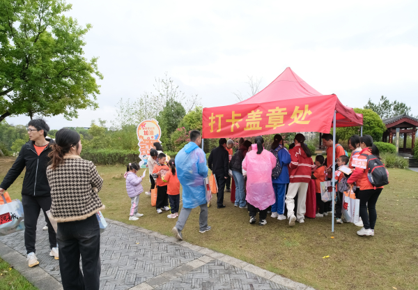 随着8点30分发令枪响,亲子家庭如潮水般从起跑线涌出,欢声笑语瞬间在公园步道上回荡开来。本次亲子跑全程约5公里,以韶州公园步道为赛道,望月广场为起终点站。赛道共设置共设置8处打卡点,打卡点任务丰富多样。“净途行者”任务,让孩子们和家长一起领取环保降解袋,沿途收集5件垃圾,在运动中增强环保意识;“宣传达人”任务则需手举牌、利用立体相框、背景墙和横幅拍照9张并分享到朋友圈,既能增添活动乐趣,又扩大活动影响力;“绿美行动”任务,亲子共同淋花淋树,为“绿美韶关”建设贡献力量;“垃圾分类”任务,考验亲子间的知识储备和协作能力。此外,还有夹板接力、摸石过河、合力建塔、双人跳绳等亲子体育互动打卡点,让亲子在游戏中增进默契。