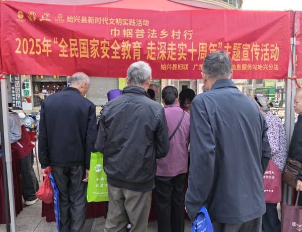 为迎接全民国家安全教育日的到来,增强广大群众的国家安全意识,维护社会的稳定,4月14日,始兴县妇联、始兴县舒心驿站积极行动,在始兴县文昌阁开展了一系列心理健康咨询、小额贷款政策解读、“美丽庭院”建设等户外宣传活动。