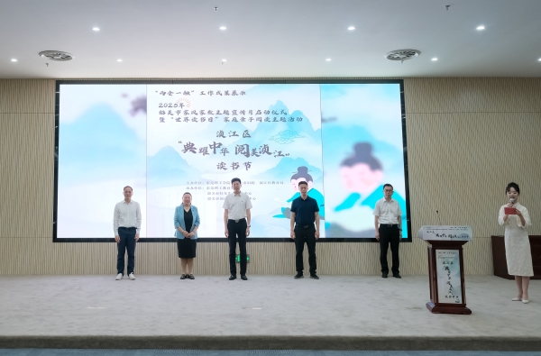 活动伊始,浈江区教育局党组成员、教师发展中心主任黄雄华,东莞理工学院校党政办公室负责人、审计工作部部长王博,韶关市妇联主席汪波先后上台致辞,为活动拉开了精彩序幕。随后,东莞理工学院副校长胡钦华,韶关市妇联主席汪波,浈江区政府党组成员尹荏彬,莞韶指挥部乡村振兴局副局长夏麟文、浈江区教育局党组成员黄雄华等五位领导上台共同启动读书节,现场气氛热烈,掌声雷动,开启了这场阅读活动的奇妙之旅。