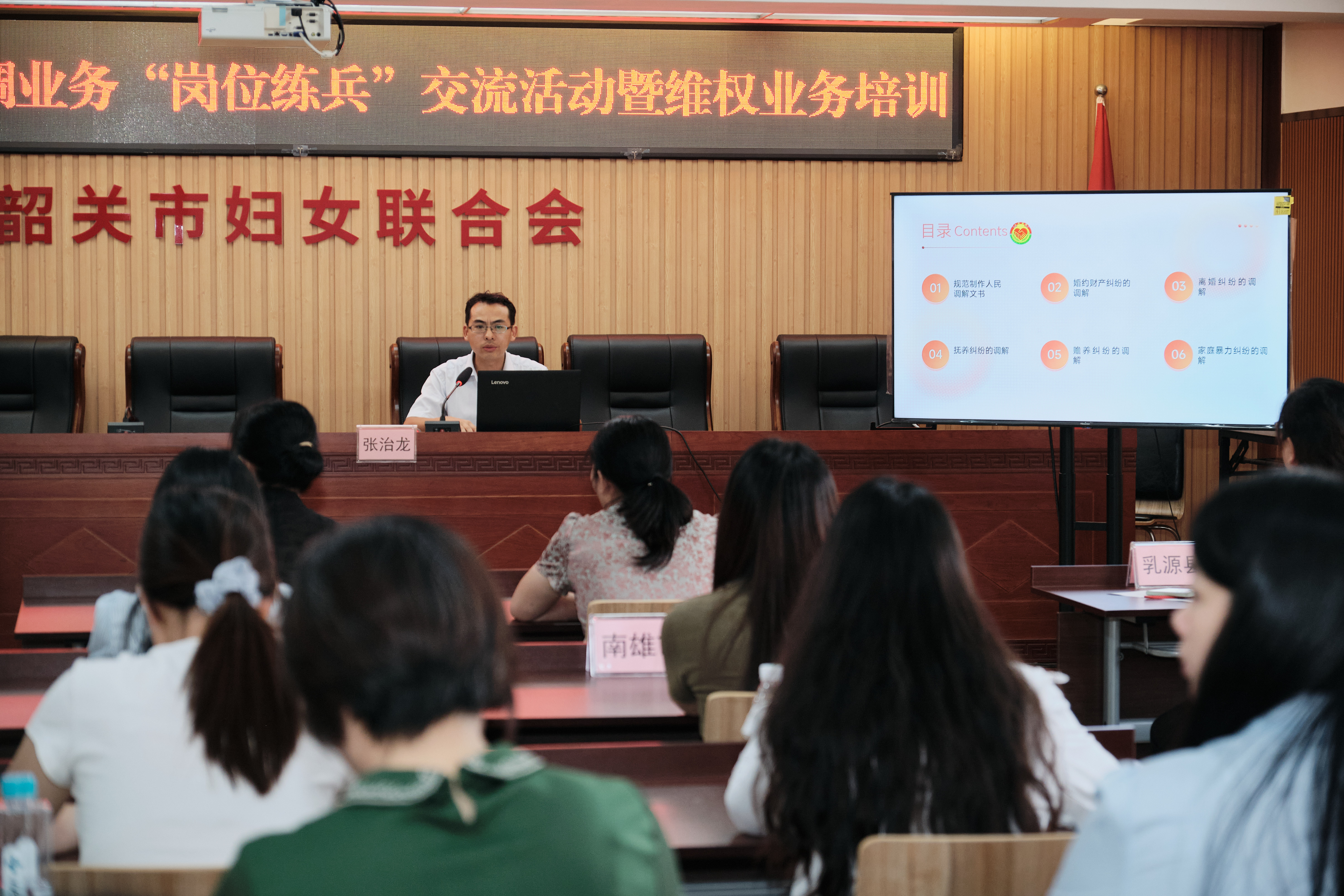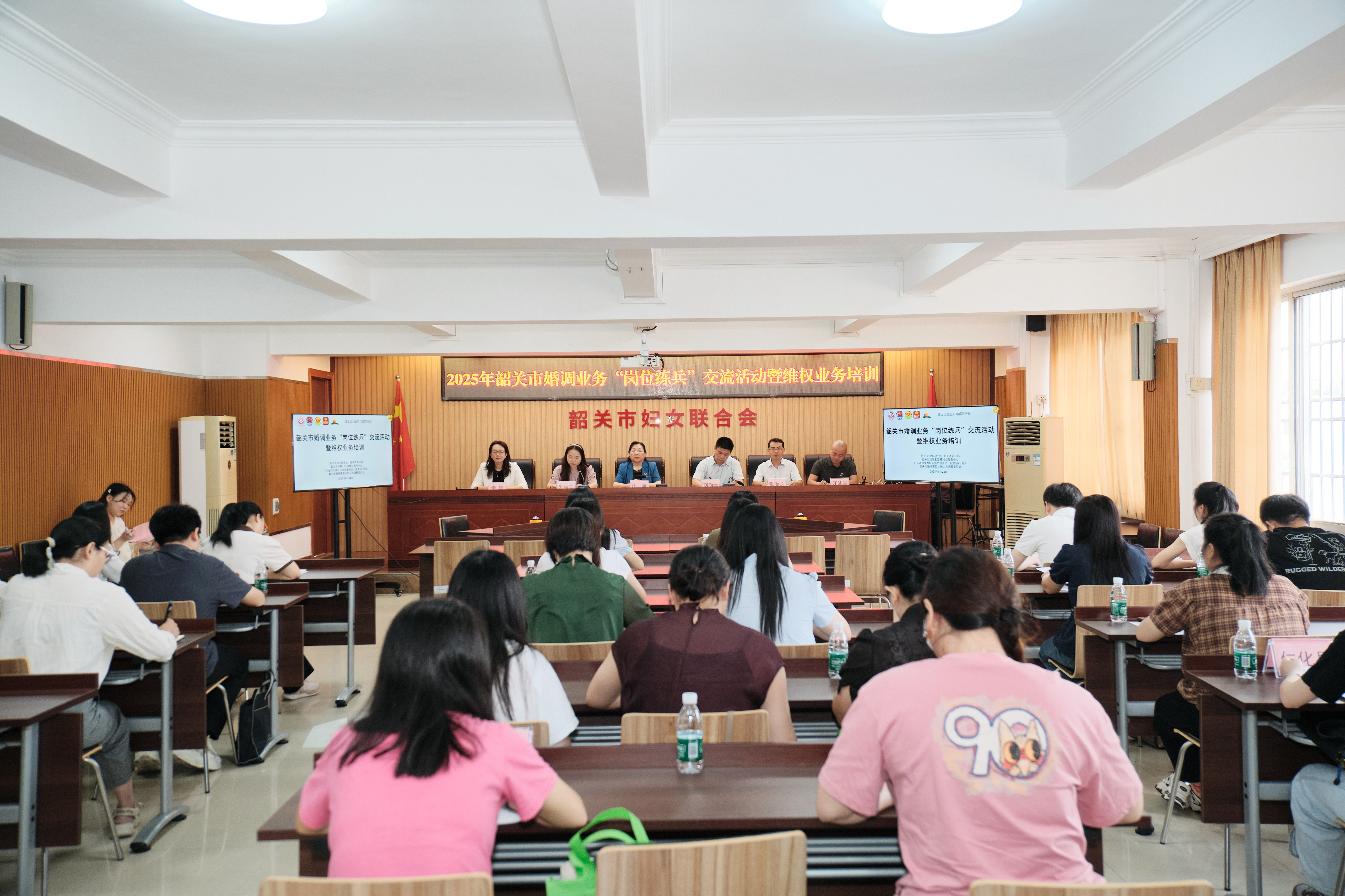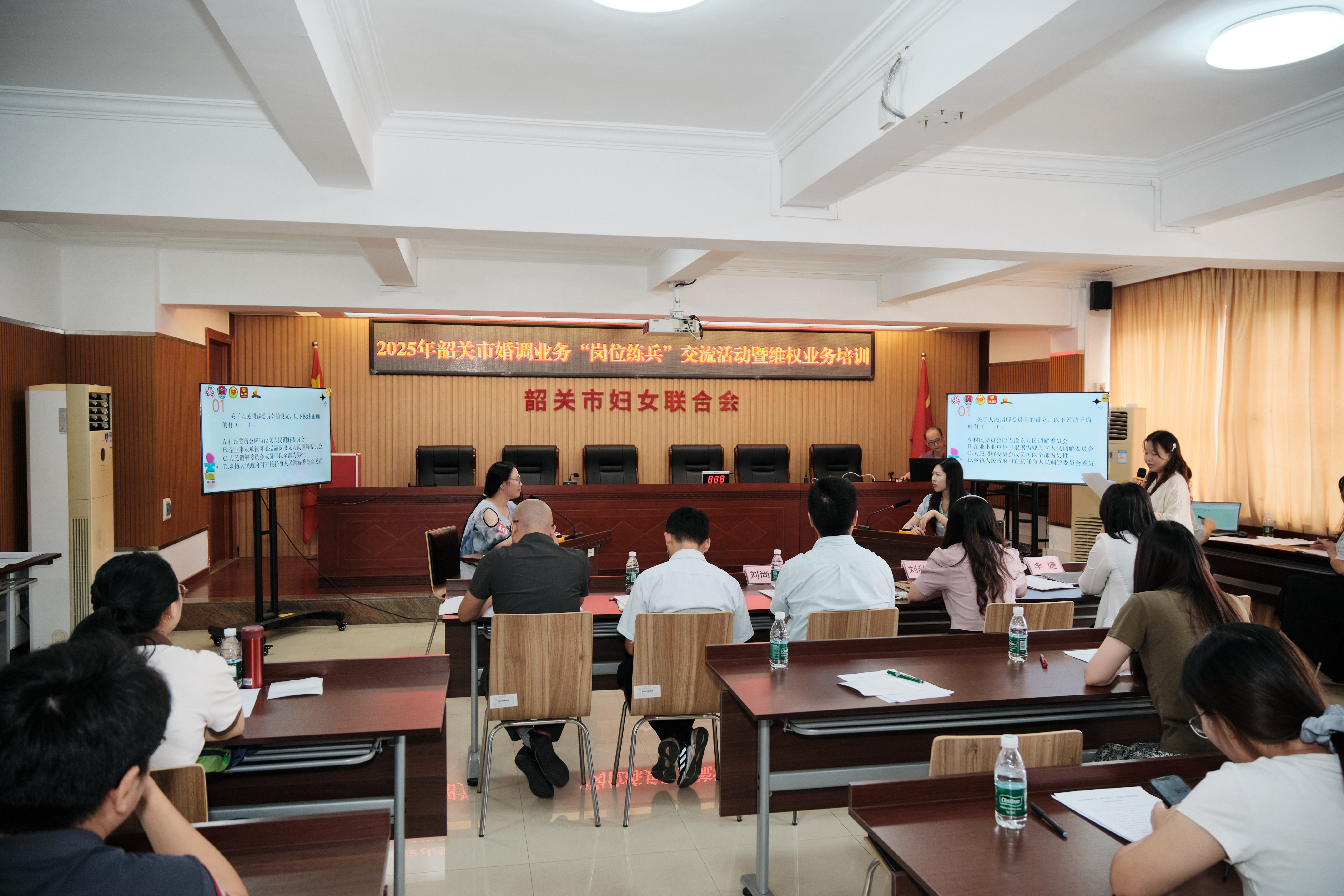 为进一步提升基层婚调与维权工作队伍的专业素养,筑牢妇女儿童权益保护防线,8月28日,韶关市妇联联合市司法局在市妇联10楼会议室成功举办全市婚调业务“岗位练兵”交流活动暨维权业务培训班。来自各县(市、区)的妇联系统维权业务骨干、婚调委调解员、司法系统人民调解员代表等40余人齐聚一堂,以“练”强技、以“学”提质,共同为韶关市婚姻家庭和谐与妇女儿童权益保护工作充电赋能。