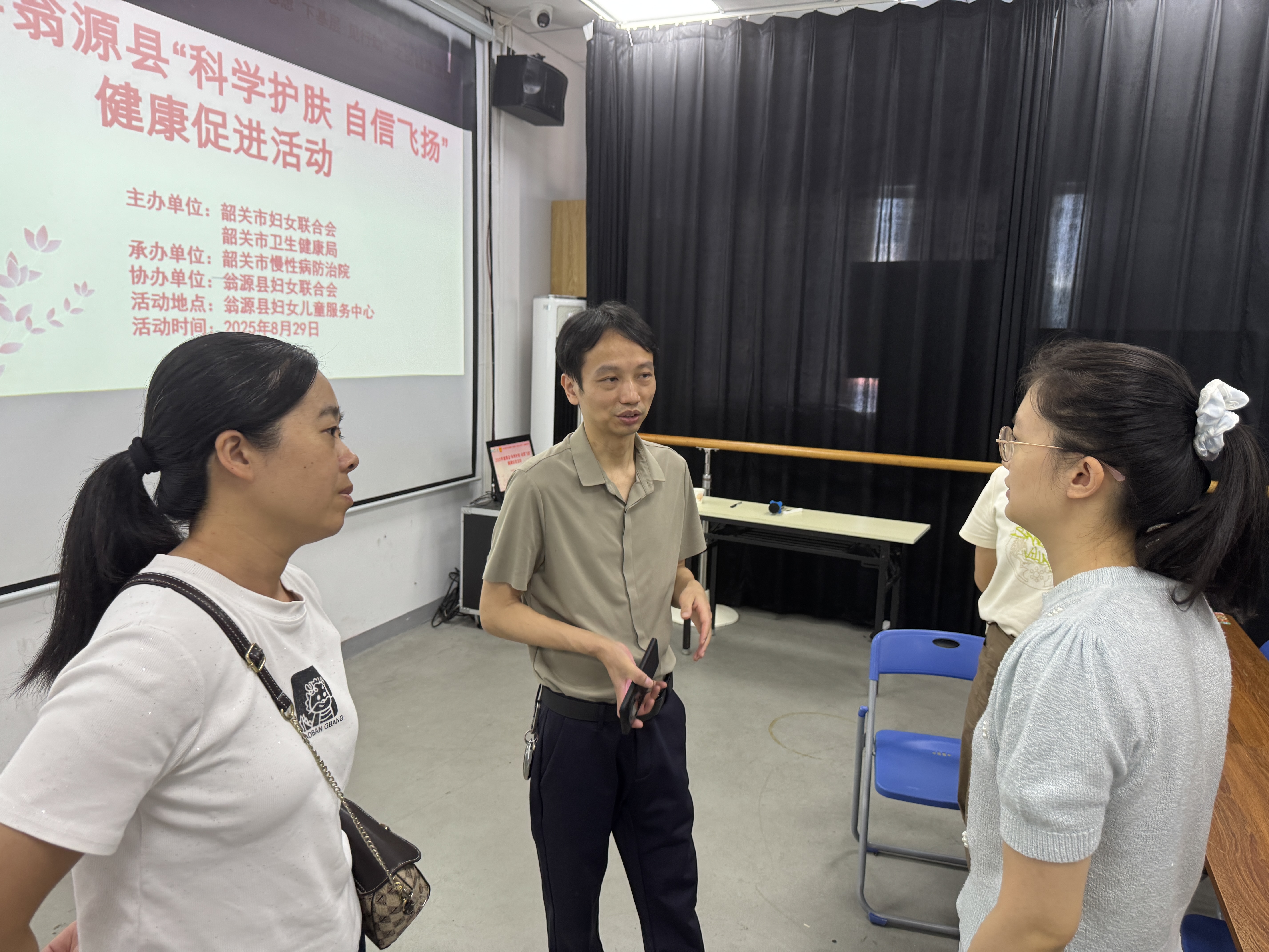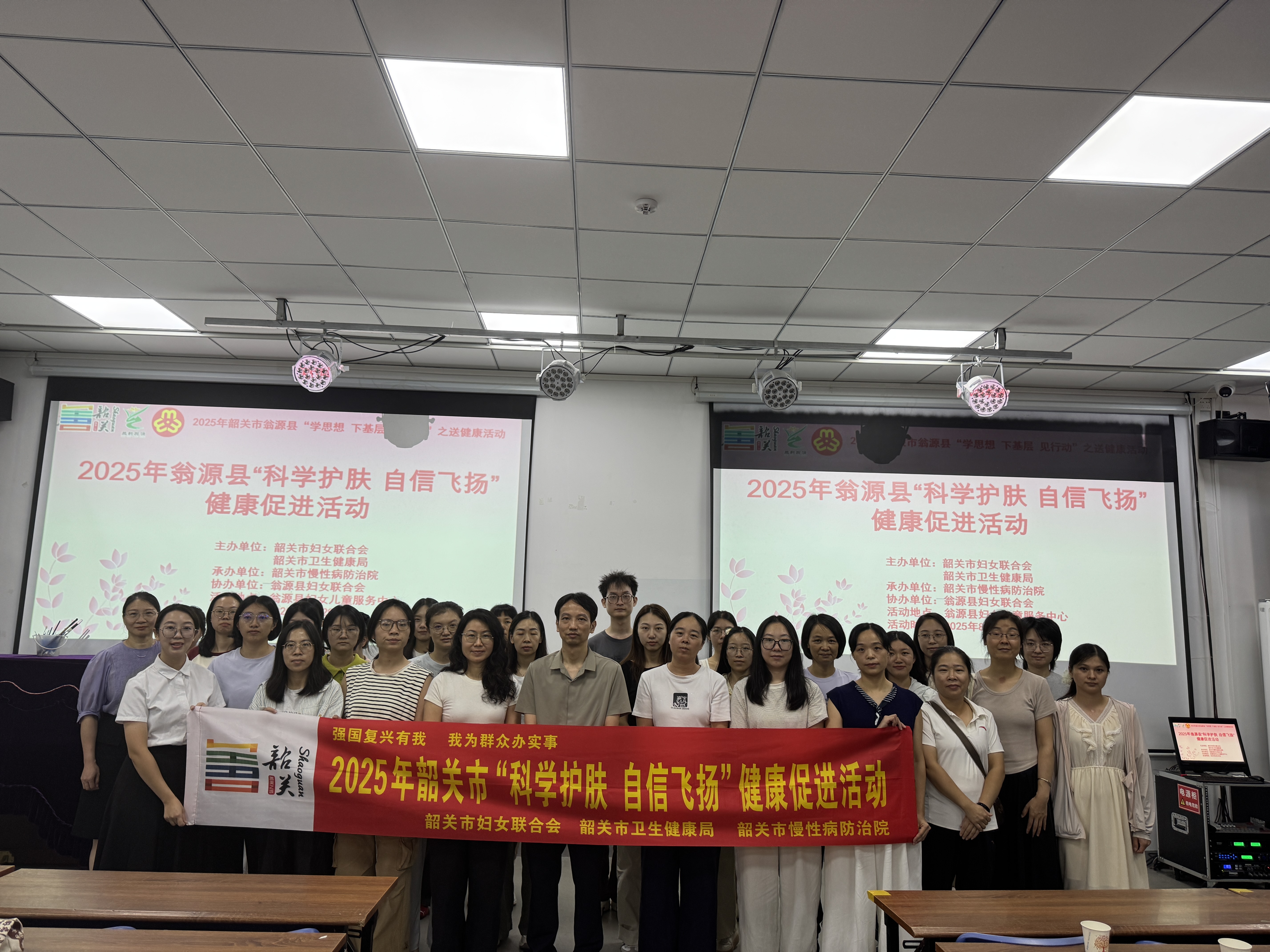 为提升干部职工健康素养,倡导护肤防病理念,普及科学护肤知识,8月29日,由韶关市妇女联合会、韶关市卫生健康局主办、韶关市慢性病防治院承办、翁源县妇女联合会协办的2025年“科学护肤 自信飞扬”健康促进活动在翁源县妇女儿童服务中心开展,通过专家授课、互动答疑、免费咨询等形式,为45名干部职工送上实用皮肤健康管理指南。