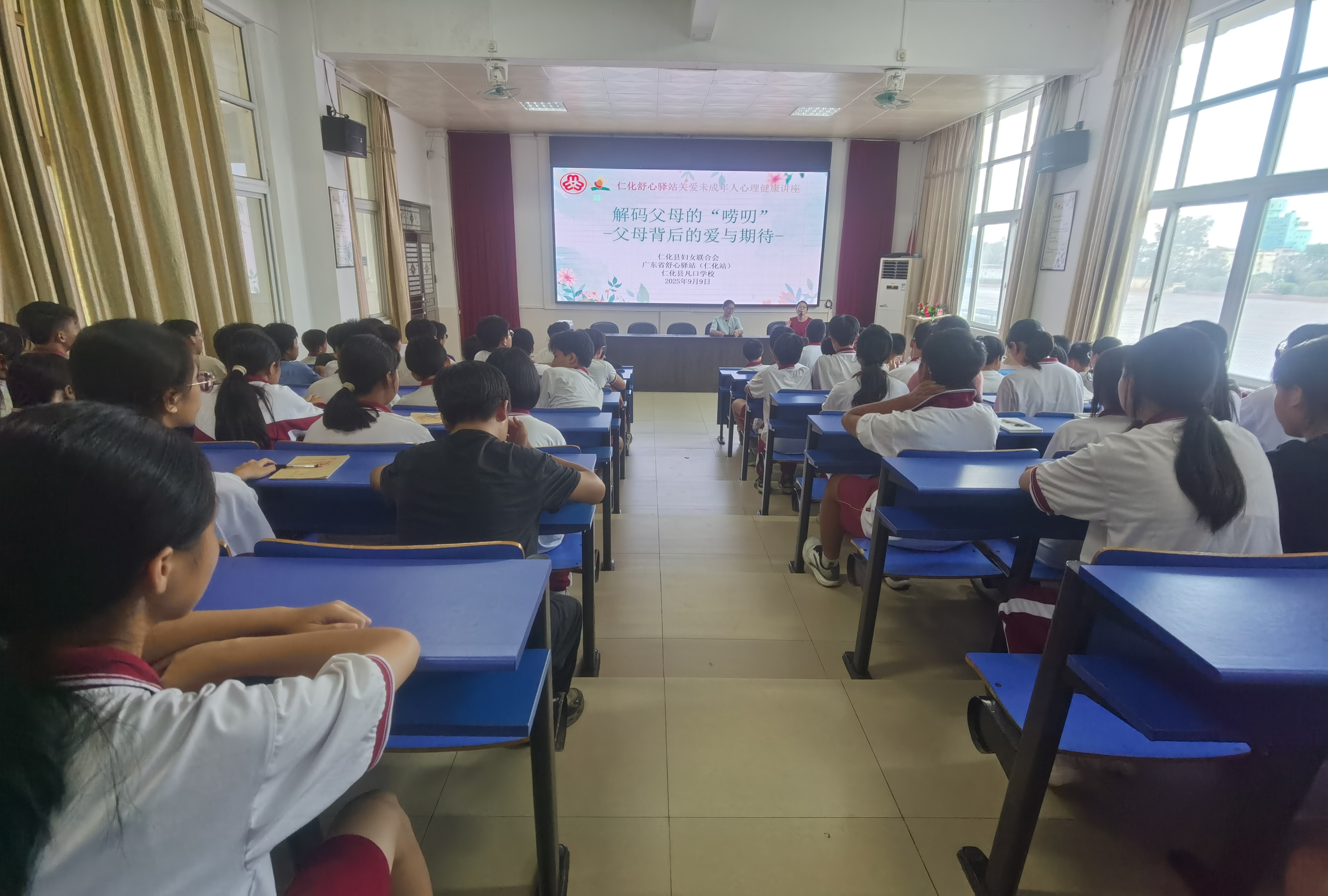 为切实关注初中生心理健康成长,破解亲子沟通中的“唠叨”难题,帮助青少年更好地理解父母的关爱,近日,仁化县妇联、舒心驿站(仁化站)走进凡口学校,面向九年级初中生举办“解码父母‘唠叨’ 父母背后的爱和期待”专题讲座。