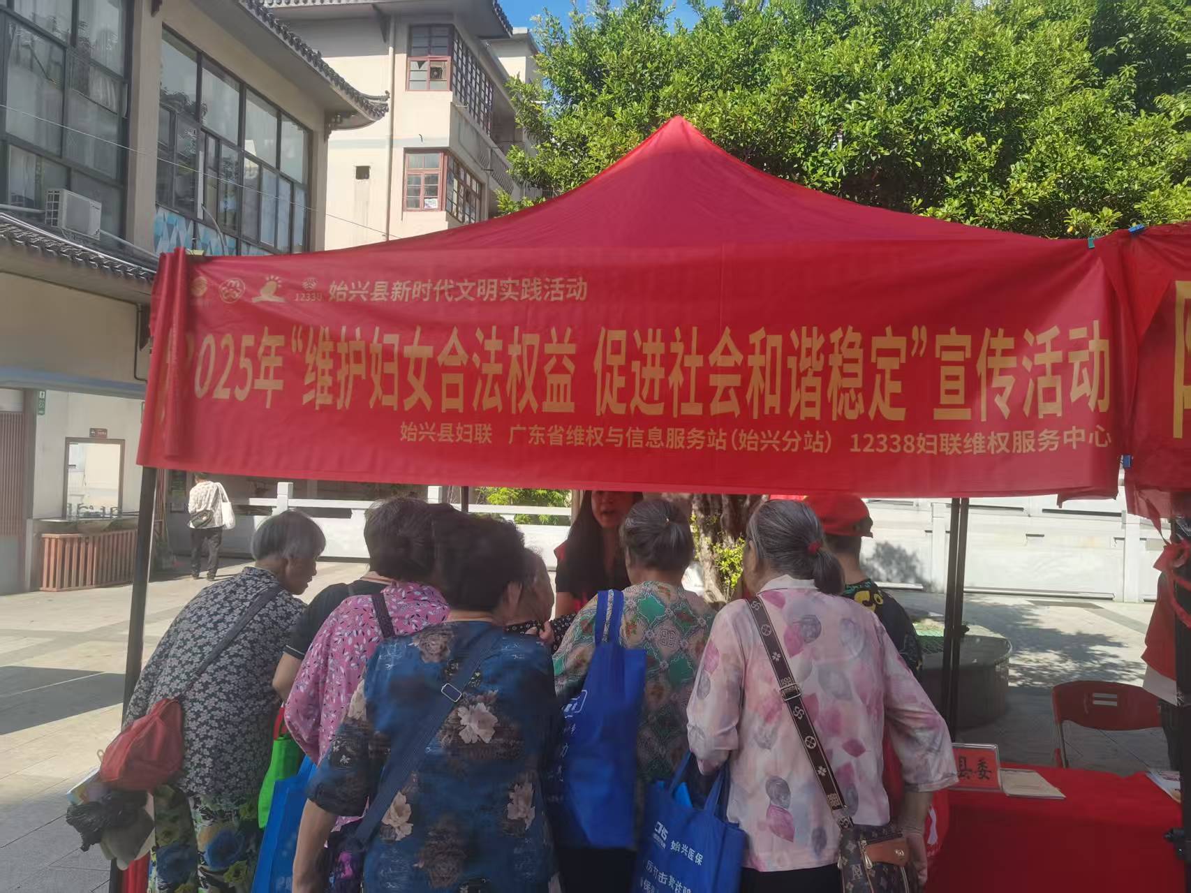 九月秋意浓,维权正当时!为进一步筑牢妇女群众的法治“防护网”,切实提升广大妇女群众的法律意识与依法维权能力,9 月 11 日上午,始兴县妇联、县舒心驿站、广东省妇女维权与信息服务站(始兴分站),走进文昌阁广场开展了一场干货满满的妇女维权普法宣传和心理健康知识宣传活动,用法律温度守护“她”权益。