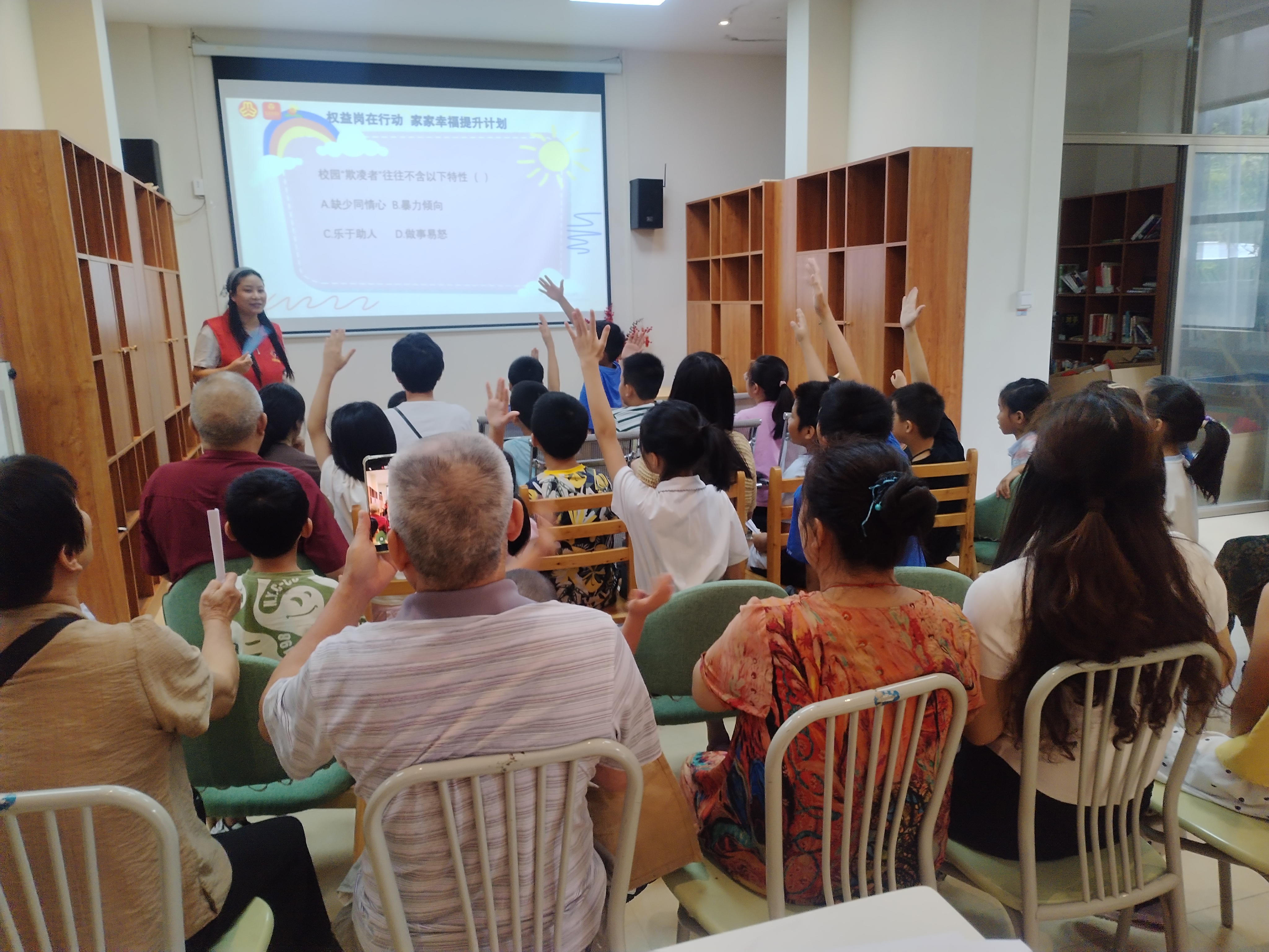 “友善相伴 欺凌退散”未成年人普法及安全教育讲座面向社区亲子家庭开展。活动通过生动案例、趣味互动游戏等形式,阐释了学生欺凌的定义,并详尽介绍了学生欺凌的表现形式、危害以及应对方法。现场工作人员着重强调了“安全第一”和“及时求助”的核心原则,引导孩子们识别欺凌行为,学会自我保护,鼓励他们勇敢对欺凌说“不”,并倡导构建友善互助的朋辈关系,并对家长如何陪伴和积极引导孩子正确处理矛盾纠纷,如何做好家庭教育给予了指导和建议,促进家长正确履行监护职责,用爱护航孩子健康成长。