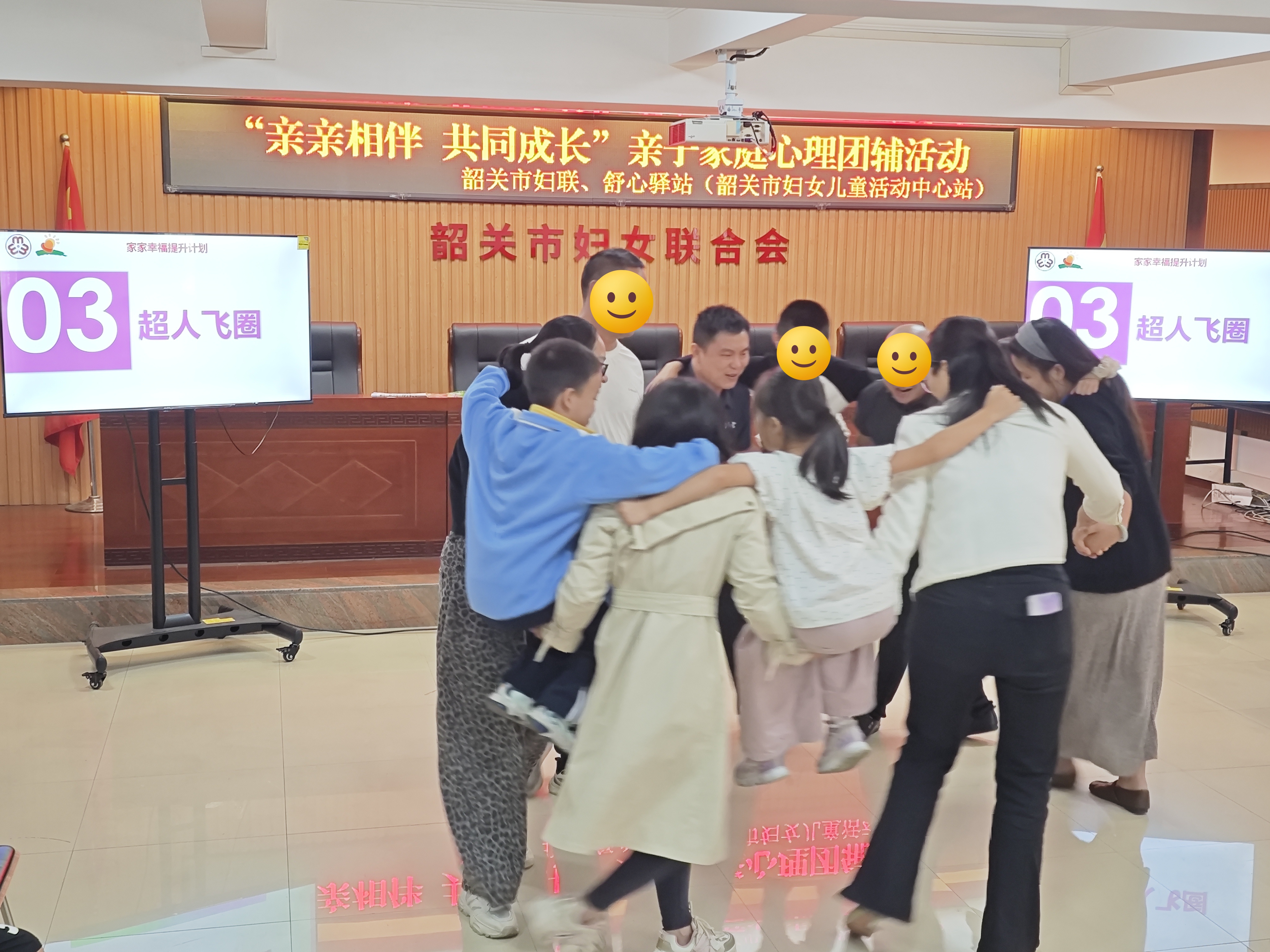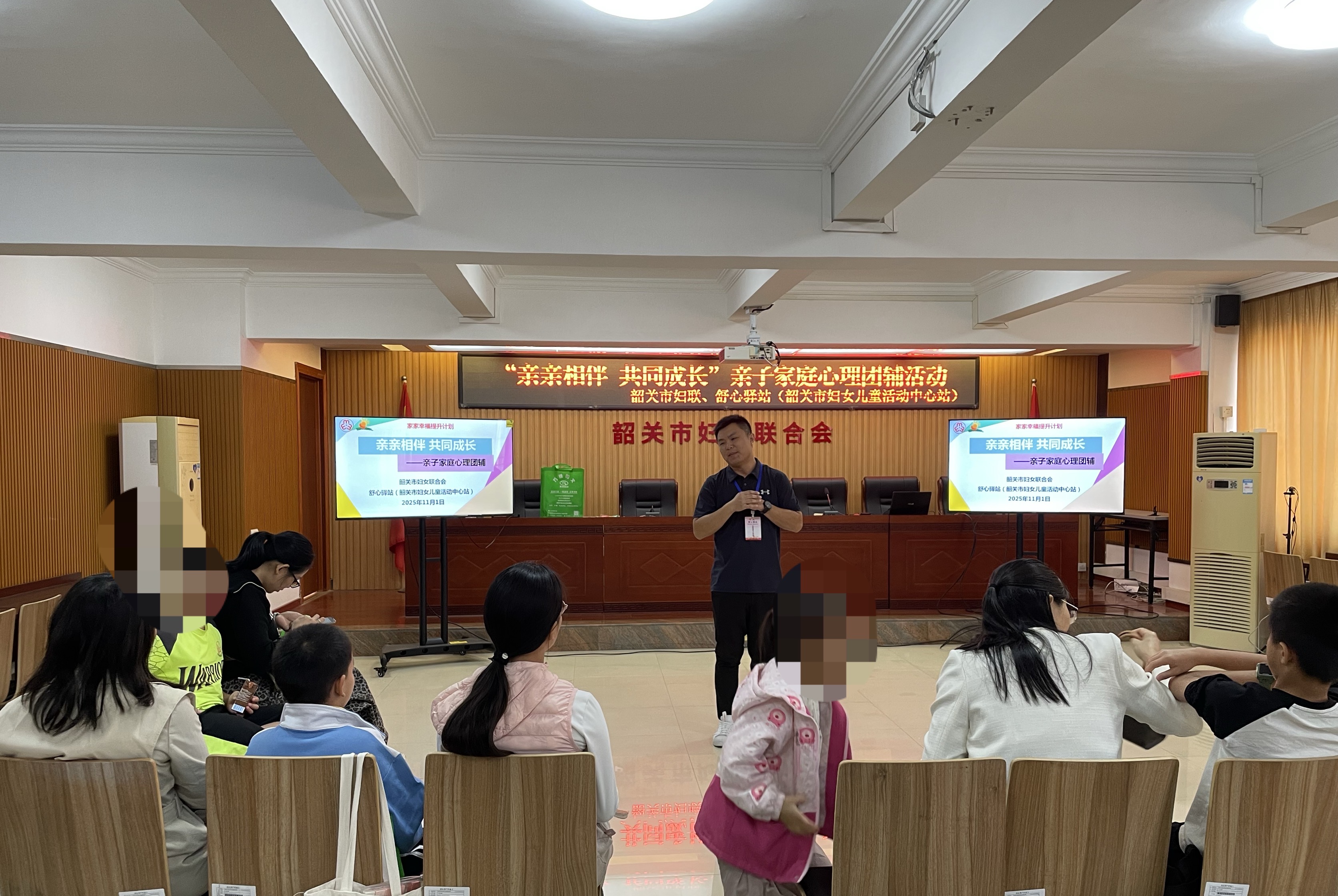 值心理健康教育月之际,为广泛传播心理健康理念,深化家庭心理支持体系建设,韶关市妇联、舒心驿站(韶关市妇女儿童活动中心站)于11月1日在市妇联十楼活动室精心策划了一场名为“亲亲相伴 共同成长”的亲子家庭心理团辅活动。本次活动由国家二级心理咨询师黄晓彤老师带领,巧妙契合心理健康教育月核心主旨,为亲子家庭设计了一场集趣味互动与心理专业知识于一体的心灵成长课程,以实际行动将心理健康的种子播撒进家长和孩子心中。