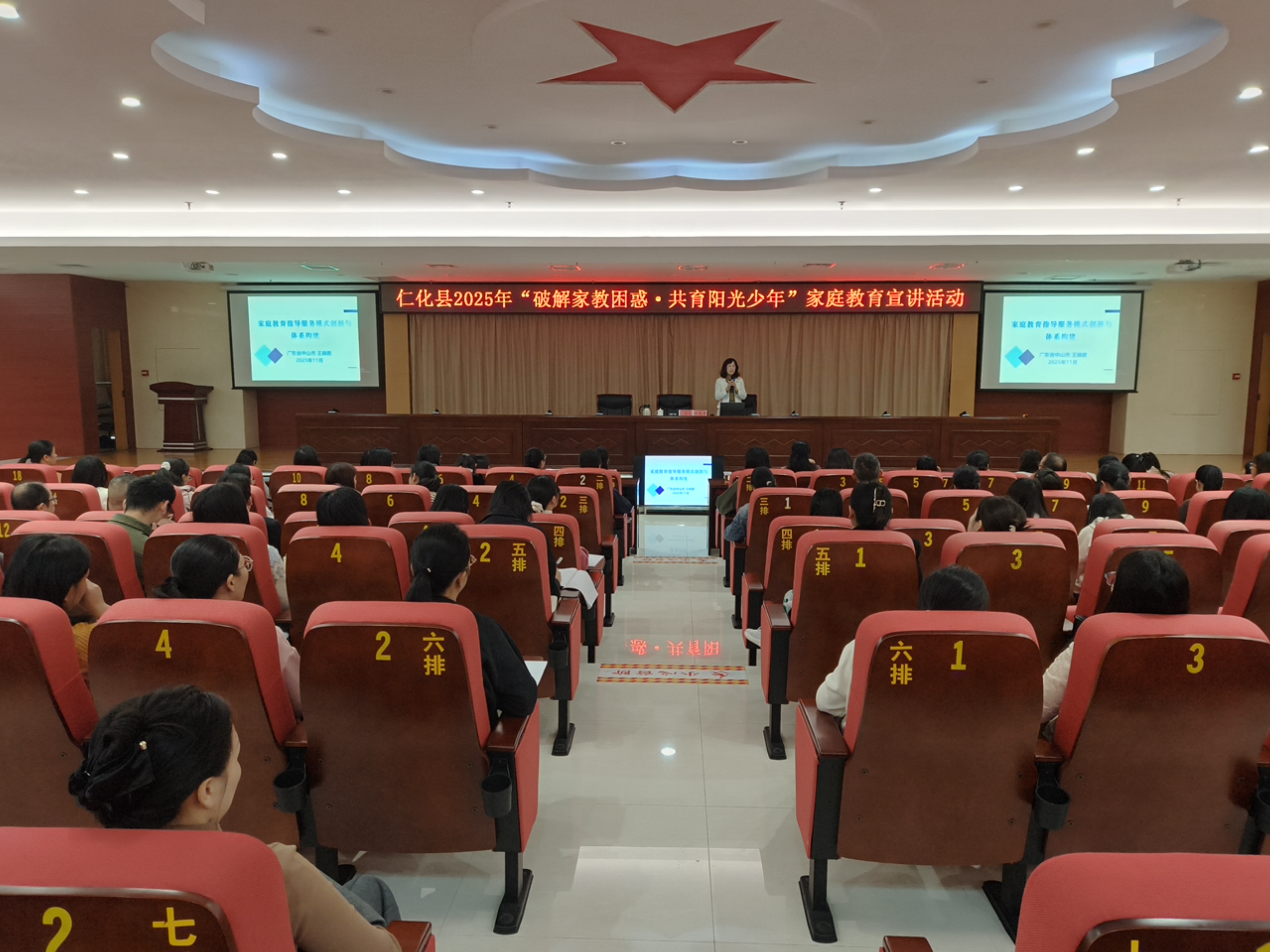 为深入贯彻《中华人民共和国家庭教育促进法》,响应国家“构建家校社协同育人体系”的号召,落实仁化县儿童发展规划,助力破解家庭教育实践中的多元困惑,精准回应孩子在不同成长阶段的发展需求,切实为广大家长和妇联干部提供专业、实用的家庭教育指导。11月2日至3日,仁化县妇联特邀全国家庭教育高级指导师,国家二级心理咨询师、中山市家庭教育工作者协会会长王晓君担任主讲,连续开展两场“破解家教困惑?共育阳光少年”家庭教育宣讲活动。