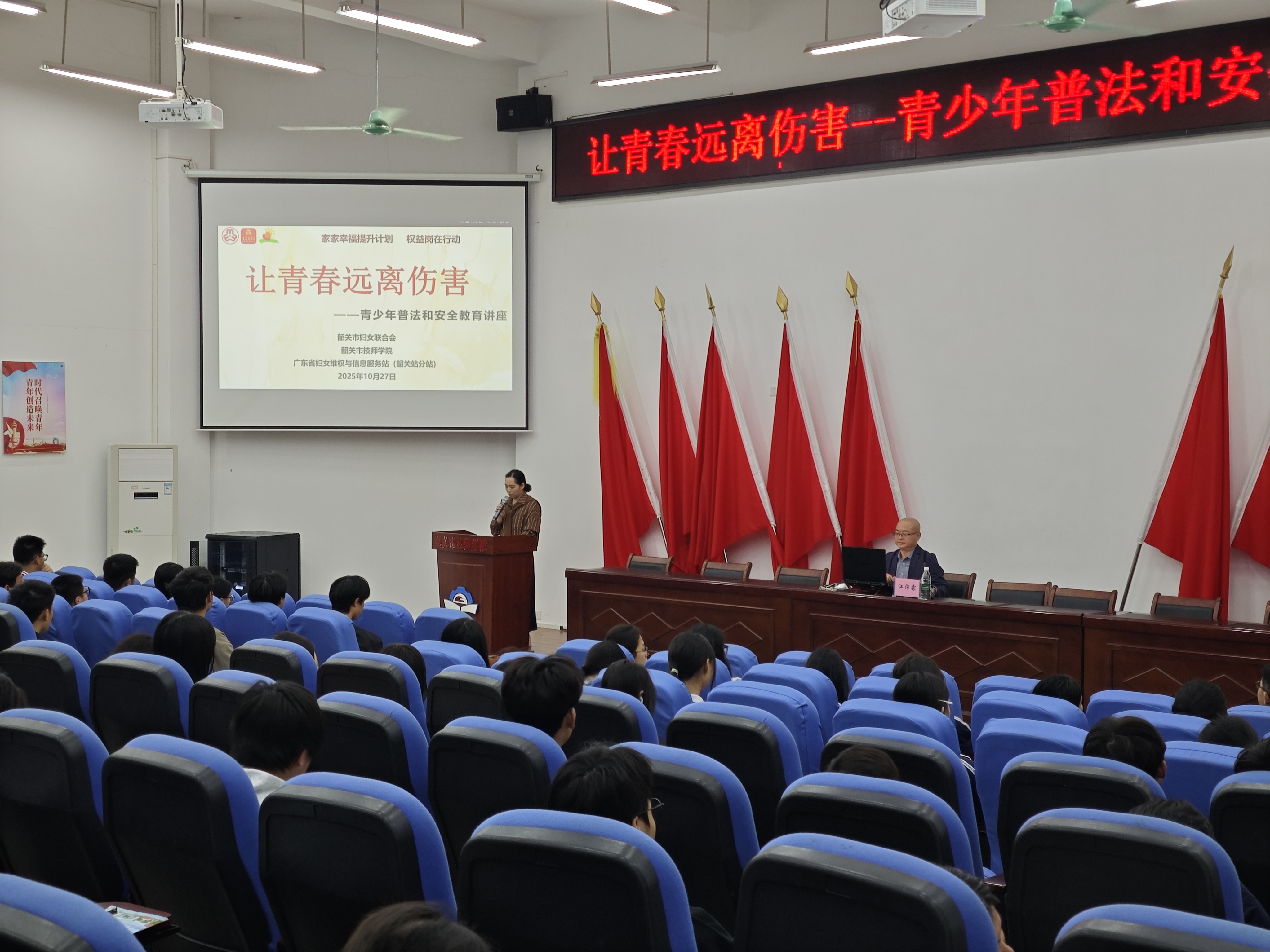 为进一步加强青少年法治教育,提升学生安全防范意识和自我保护能力,引导学生树立正确的法治观念,自觉抵制不良行为,守护青春健康成长。近日,韶关市妇联、韶关市技师学院、广东省妇女维权与信息服务站(韶关站分站)在韶关市技师学院成功举办了一场主题为“让青春远离伤害”的青少年普法与安全教育讲座。讲座由国家二级心理咨询师、中级社工师、韶关站分站项目负责人江沛霖担任主讲,该校师生共计160多人参与。