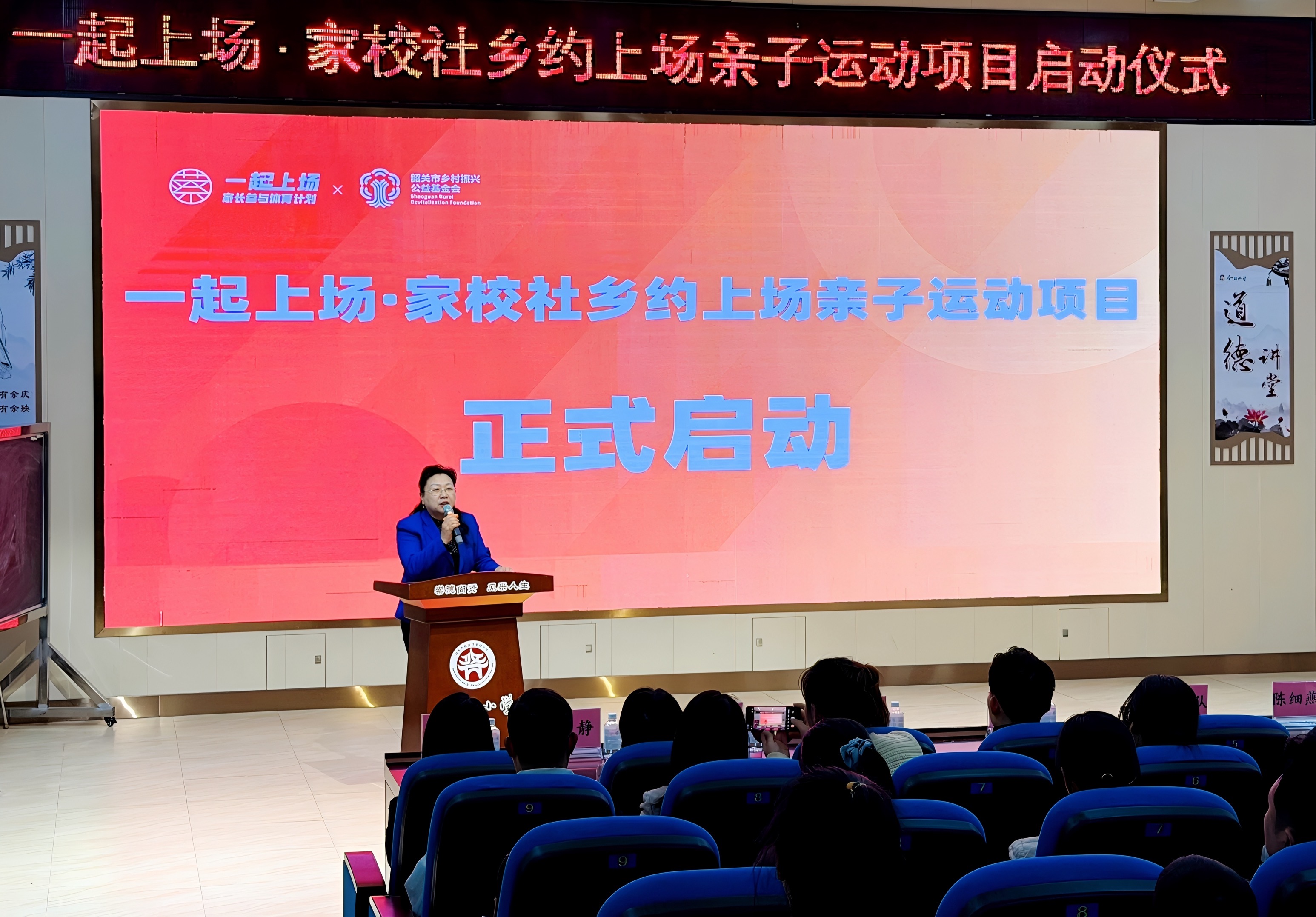 韶关市妇女联合会主席汪波发表讲话并宣布项目正式启动。她强调,学校、家庭、社会为育人主阵地,本次活动以丰富多元的亲子运动场景为载体,让亲子温情在互动中升温,协同育人理念在实践中扎根,为家校社协同育人开辟了全新路径。她希望各方通力配合项目实施,既为广大家庭提供高质量家庭教育体验,也要积极探索乡村儿童友好新模式,推动儿童友好从“政策蓝图”转化为孩子们看得见、摸得着、感受得到的“幸福实景”,为韶关市儿童友好城市建设注入强劲活力。