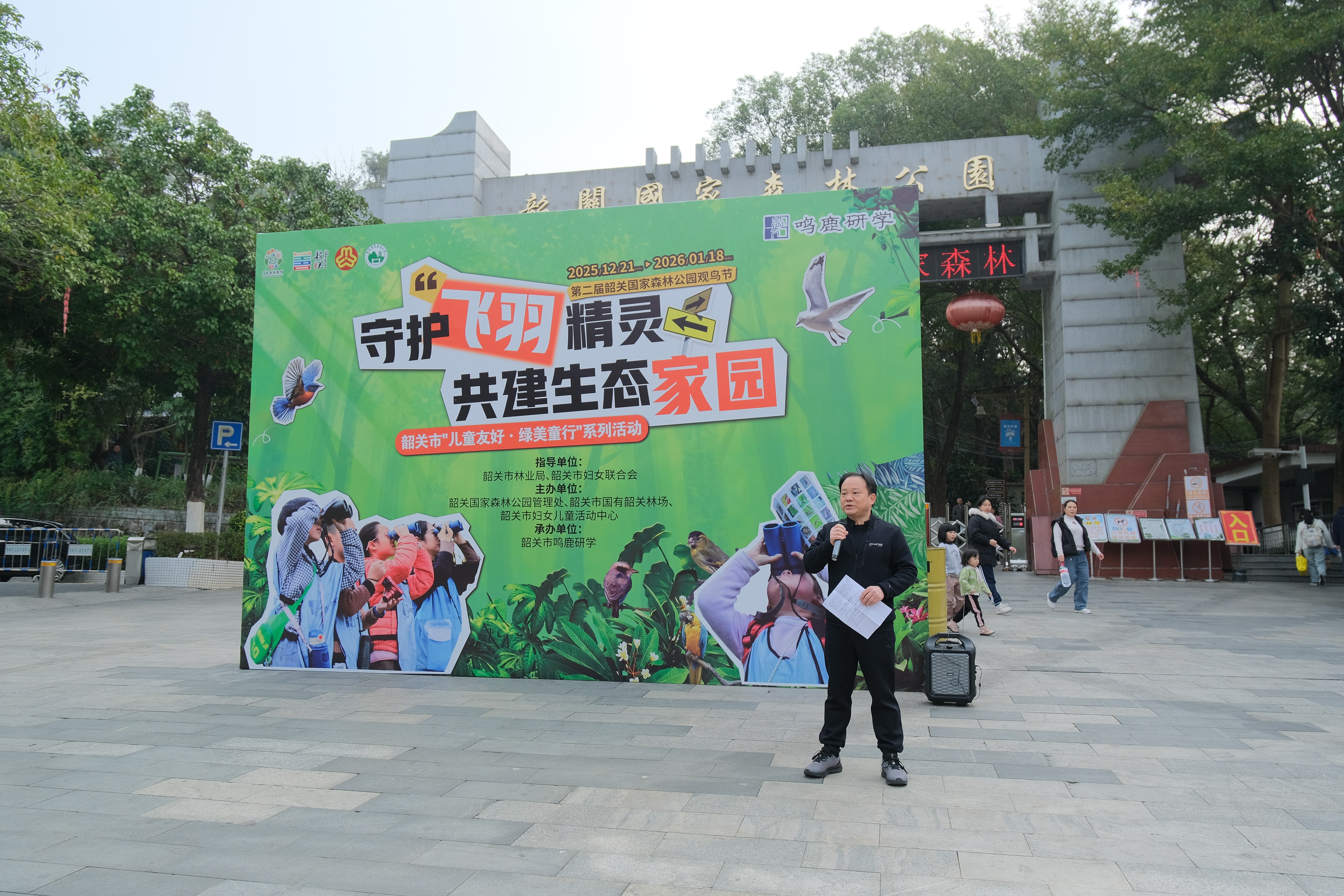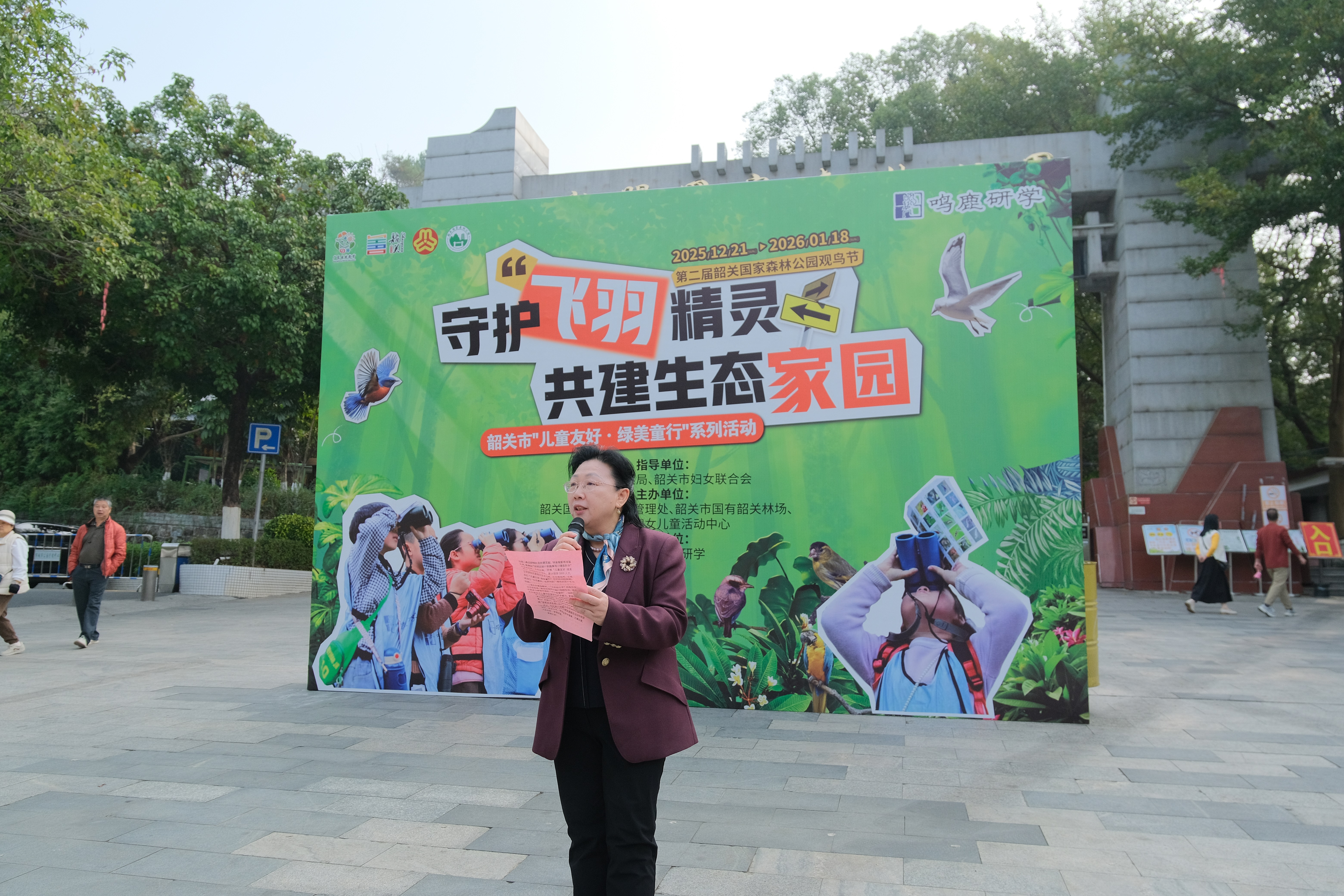 12月21日上午,“儿童友好 绿美童行”系列活动之第二届韶关国家森林公园观鸟节在韶关国家森林公园大门广场正式启动,本次活动由韶关市林业局、韶关市妇女联合会指导,韶关国家森林公园管理处、韶关市国有韶关林场、市妇女儿童活动中心主办,鸣鹿研学承办。市妇联党组书记、主席汪波,市林业局党组成员、副局长张国安出席活动,与众多亲子家庭、工作人员及媒体朋友齐聚一堂,共赴一场与自然的亲密邂逅,在观鸟寻踪中厚植生态保护理念。