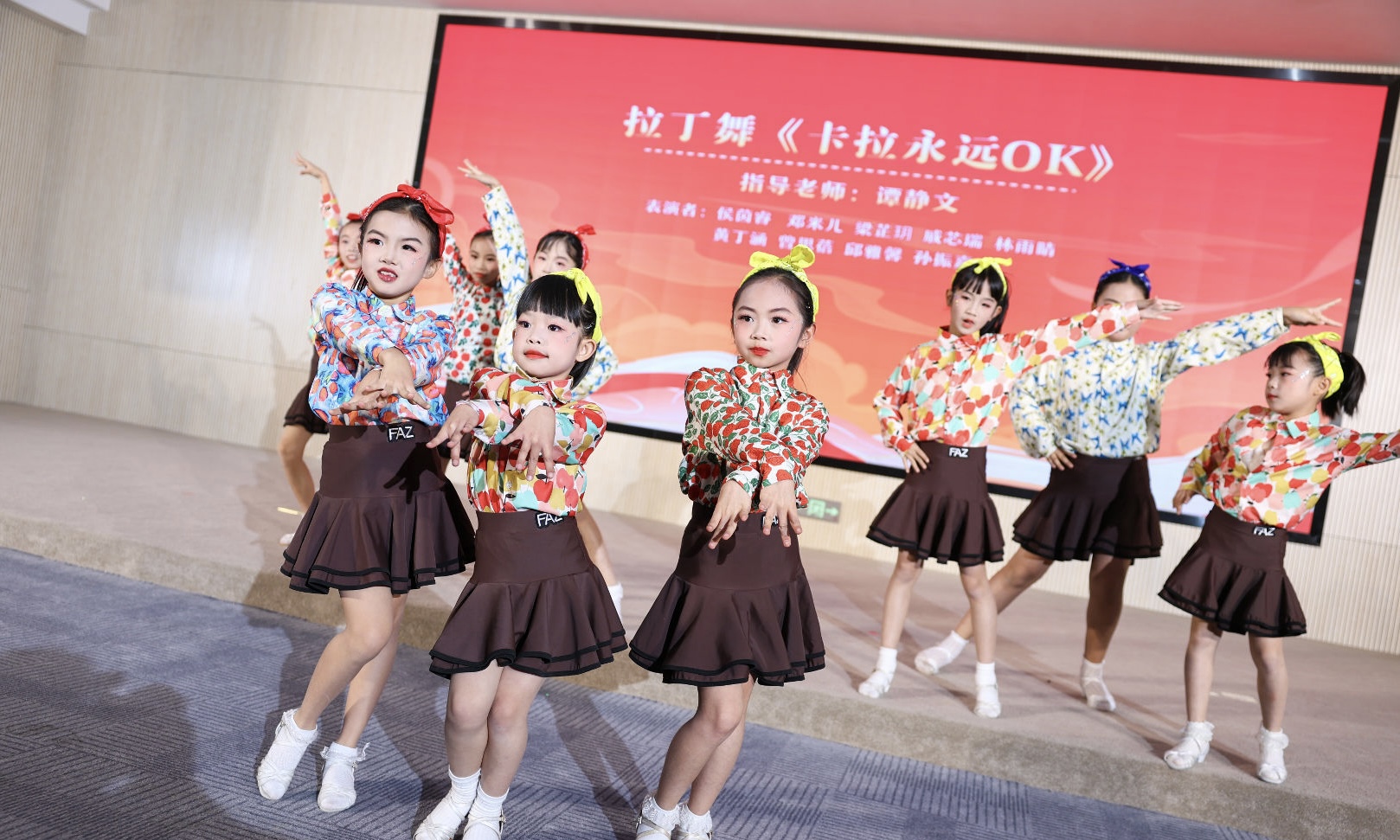 启动仪式后,文艺汇演精彩上演,既有中国舞的柔美、芭蕾舞的优雅、拉丁舞的活力,又有东方舞的灵动与合唱的深情交织碰撞;韶关开放大学社区教育学员的舞蹈表演更是惊艳全场。老年学员们身着靓丽服饰,以娴熟的舞姿、饱满的精神状态演绎经典曲目,举手投足间尽显优雅风采,既展现了老年群体积极向上的生活态度,也传递出代际共融的温暖情怀。孩子们则用扎实的功底和饱满的热情,展现了艺术学习的丰硕成果。舞台上,无论是朝气蓬勃的少年舞者,还是风采依旧的老年学员,都自信绽放,每一个舞姿、每一段旋律都传递着对生活的热爱;舞台下,家长们的掌声与欢呼声此起彼伏,温暖的亲情、深厚的代际情谊与艺术的魅力交融共生。汇演尾声,主办方为参演学员颁发奖状与礼物,见证孩子们的成长与收获。