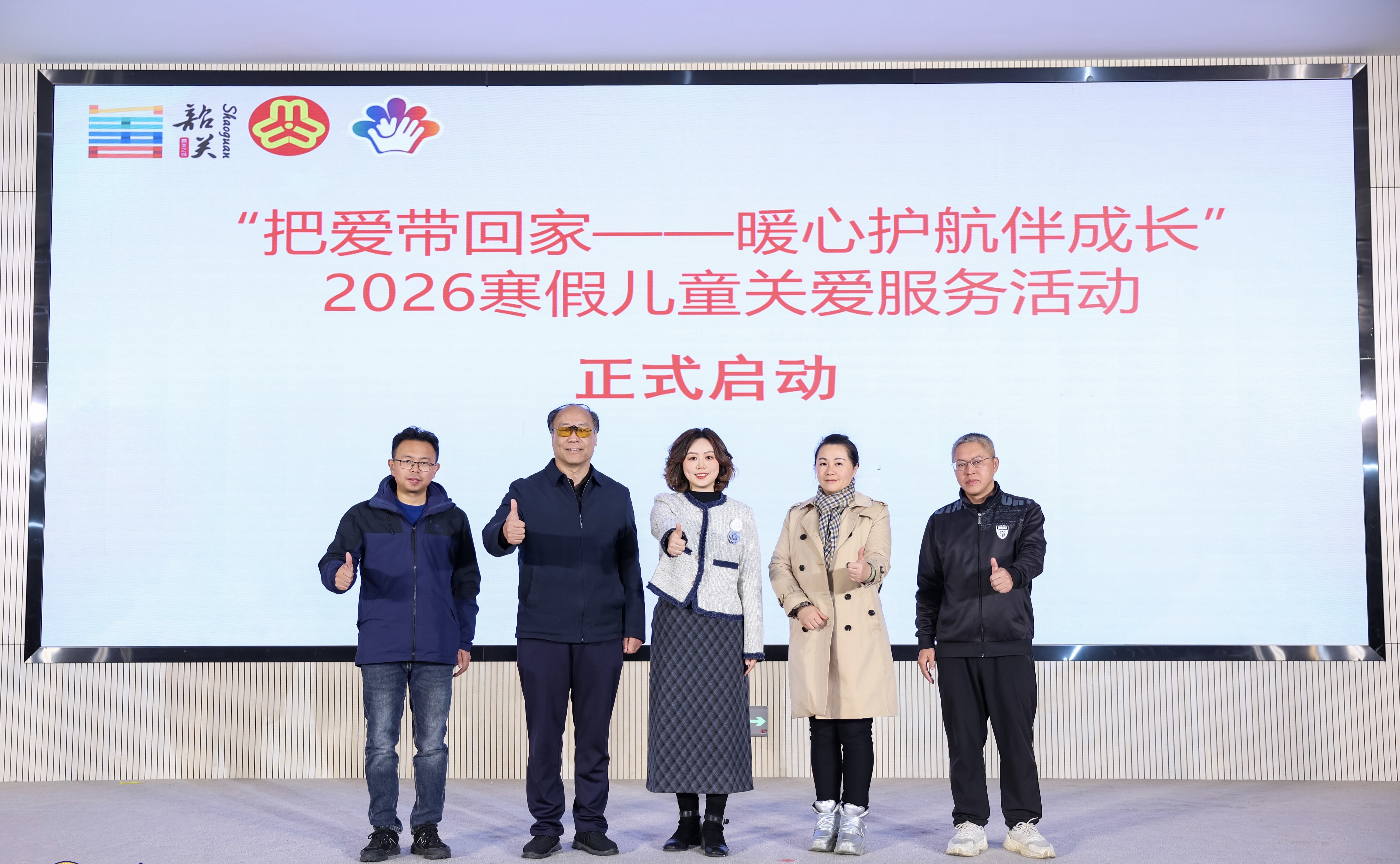随着倒计时声响起,市妇联、市教育局、市文广旅体局、市卫生健康局、市关工委等5个部门领导共同上台触摸启动屏,正式拉开2026年韶关市寒假儿童关爱服务活动的序幕。