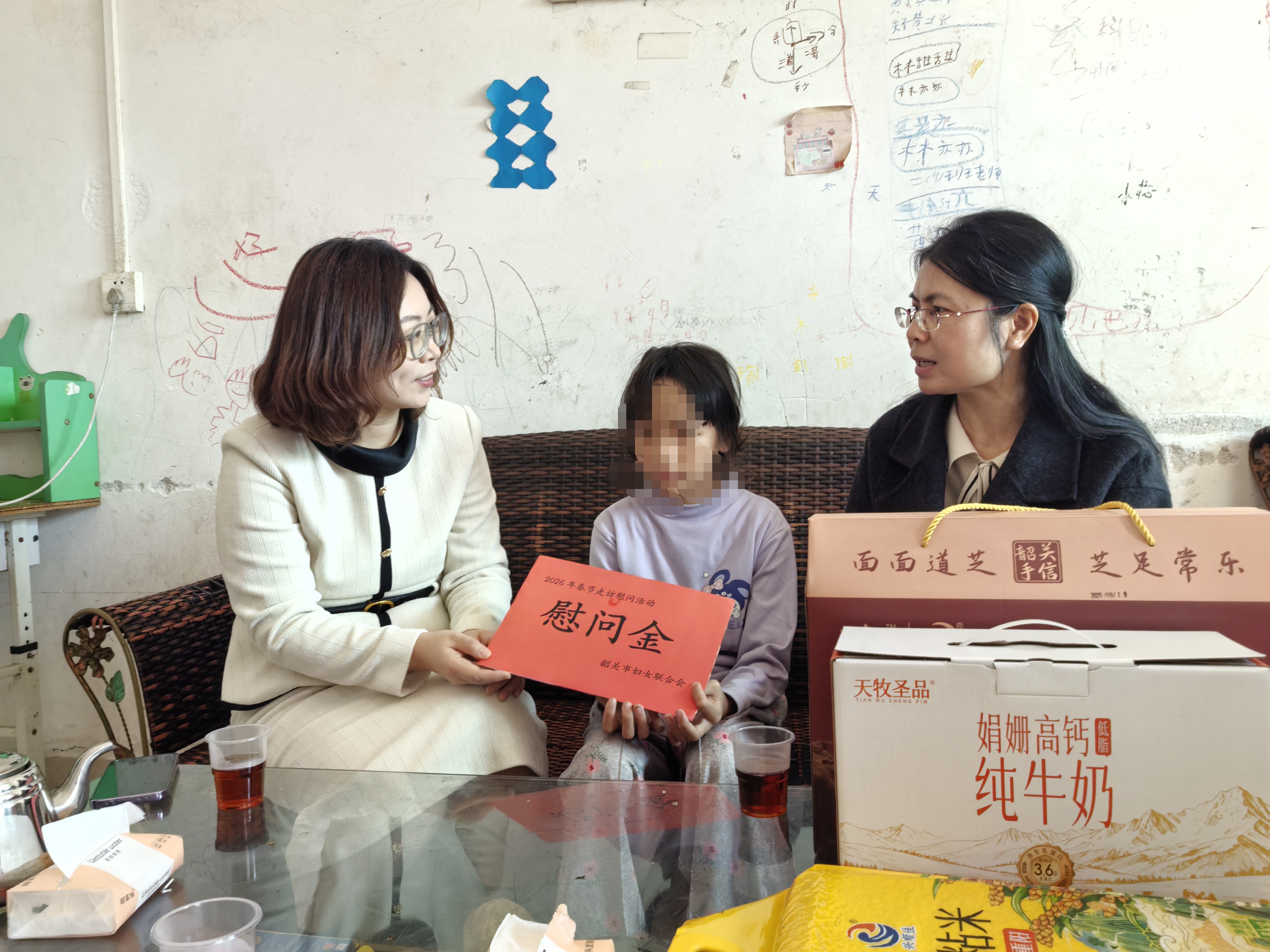 邓丹一行先后深入丹霞街道、周田镇,走进困境儿童家中,与孩子们及家属亲切交谈,详细了解孩子们的学习、生活和实际需求,为他们送去慰问金、慰问品以及新春的美好祝福,让困境儿童家庭真切感受到党和政府的温暖关怀,以及妇联“娘家人”的贴心呵护。每到一户,邓丹都耐心鼓励孩子们要树立信心、坚强乐观,勇于克服生活中的困难,努力学习、茁壮成长。同时,她叮嘱基层妇联干部要抓实抓细困难妇女儿童常态化关爱帮扶工作,持续关注困境儿童成长动态,精准对接需求、破解实际难题,以暖心服务为孩子们的健康快乐成长筑牢保障防线。