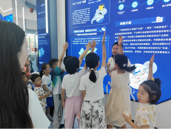 活动首站,孩子们走进华韶数据谷展厅,近距离感受“东数西算”国家战略在韶关落地的重要成果,直观了解大数据产业发展与城市数字“大脑”运行原理,在心中播下热爱科学、关注科技发展的种子。