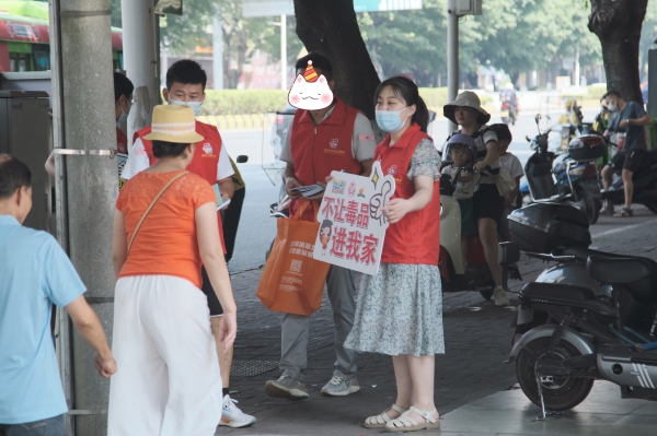 2022年7月30日,市妇联、广东省妇女维权与信息服务站(韶关站/分站)组织“粤北兰馨”志愿服务队青年志愿者到武江区新华街道五祖路社区开展禁毒反诈宣传志愿服务活动,“粤北兰馨”志愿者和妇联干部、工作人员约30多人参与活动,将禁毒知识和反诈防骗知识宣传到社区居民和群众身边。