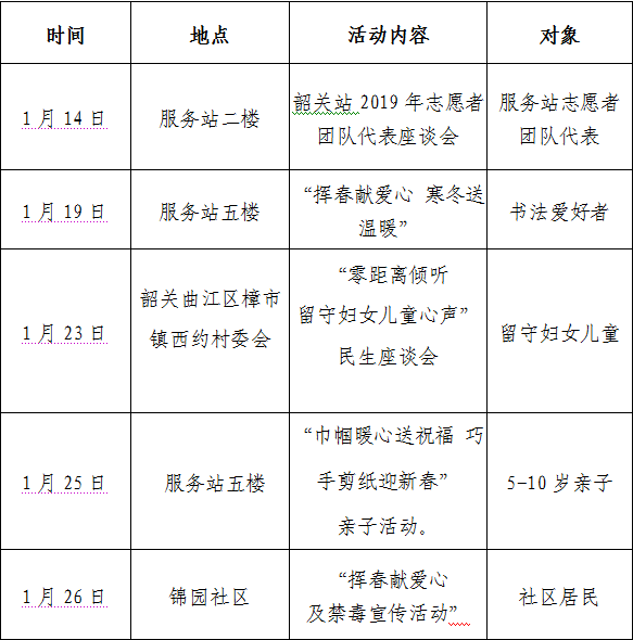 广东省妇女维权与信息服务站(韶关站)(2019年1月)活动公告