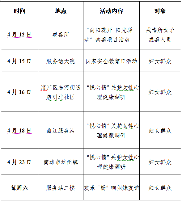 广东省妇女维权与信息服务站(韶关站) (2019年4月)活动公告