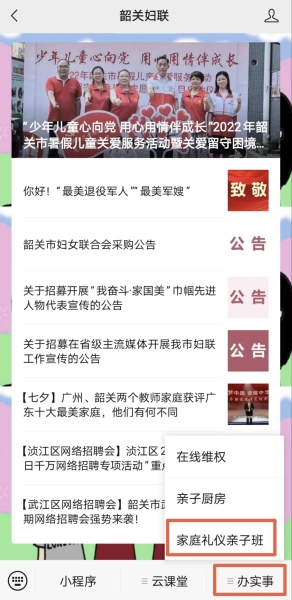 进入公众号,在菜单栏-办实事-家庭礼仪亲子班处即可进行扫码报名