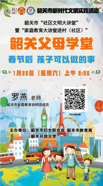 《父母学堂》第五十一期将邀请韶关市家庭教育讲师团成员罗燕,以《春节后,孩子可以做的事》为主题,与家长们一起探讨过完春节后,年后综合症有哪些?还有如何调整生活作息、饮食以及心态和情绪。