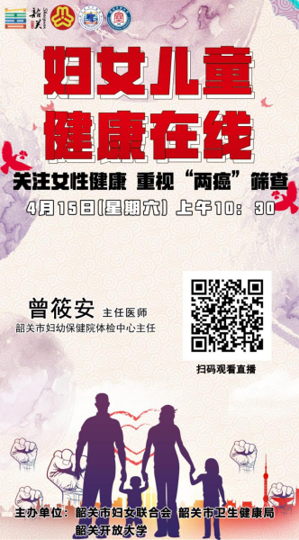 为学习宣传贯彻党的二十大精神,认真学习贯彻习近平总书记关于健康中国建设的重要论述,认真落实全国妇联、省妇联和市委市政府关于家庭健康工作的有关部署要求,以提高妇女儿童健康水平、促进妇女儿童全面发展为主要目标,市妇女联合会、市卫生健康局、韶关开放大学联合创办了韶关市《妇女儿童健康在线》线上直播栏目,以线上直播方式邀请市内专家名师开展妇女儿童健康讲座,逢周六上午开播。课程内容主要围绕妇女与儿童健康方面的知识进行科普。