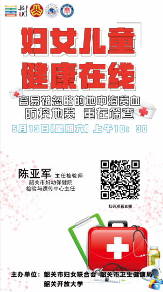 为学习宣传贯彻党的二十大精神,认真学习贯彻习近平总书记关于健康中国建设的重要论述,认真落实全国妇联、省妇联和市委市政府关于家庭健康工作的有关部署要求,以提高妇女儿童健康水平、促进妇女儿童全面发展为主要目标,市妇女联合会、市卫生健康局、韶关开放大学联合创办了韶关市《妇女儿童健康在线》线上直播栏目,以线上直播方式邀请市内专家名师开展妇女儿童健康讲座,逢周六上午开播。课程内容主要围绕妇女与儿童健康方面的知识进行科普。