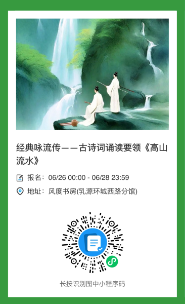 诵读是一种以“读”为主要形式的艺术,但这种“读”不再是简单地把文字念出来。那我们要怎么才能将文本背后的情感、意境、真与美呈现出来,创造出新的审美空间呢?本周六上午我们一起在高山流水中探寻吧!