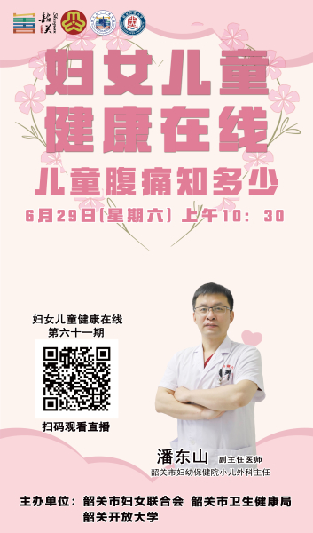 为学习宣传贯彻党的二十大精神,认真学习贯彻习近平总书记关于健康中国建设的重要论述,认真落实全国妇联、省妇联和市委市政府关于家庭健康工作的有关部署要求,以提高妇女儿童健康水平、促进妇女儿童全面发展为主要目标,市妇女联合会、市卫生健康局、韶关开放大学联合创办了韶关市《妇女儿童健康在线》线上直播栏目,以线上直播方式邀请市内专家名师开展妇女儿童健康讲座,逢周六上午开播。课程主要围绕妇女与儿童健康方面的知识进行科普。