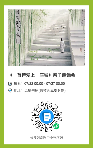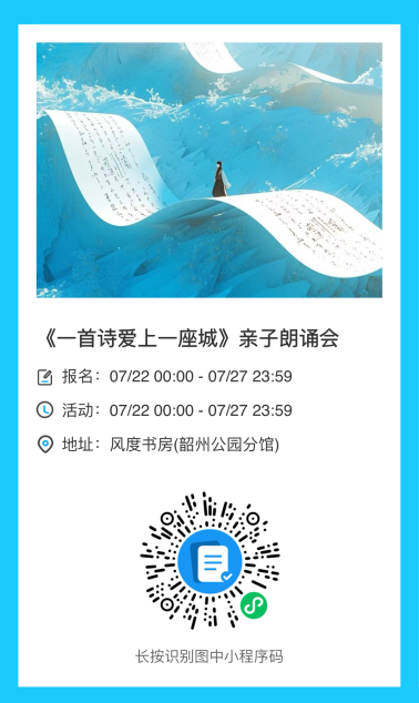 活动地点:(上午场)韶关市风度书房浈江区凤凰分馆;(下午场)韶关市风度书房武江区韶州公园分馆