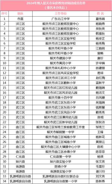 关于2024年韶关市家庭教育讲师团队伍建设评审结果公示