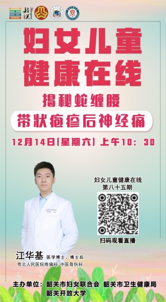为学习宣传贯彻党的二十届三中全会精神,认真学习贯彻习近平总书记关于健康中国建设的重要论述,认真落实全国妇联、省妇联和市委市政府关于家庭健康工作的有关部署要求,以提高妇女儿童健康水平、促进妇女儿童全面发展为主要目标,市妇女联合会、市卫生健康局、韶关开放大学联合创办了韶关市《妇女儿童健康在线》线上直播栏目,以线上直播方式邀请市内专家名师开展妇女儿童健康讲座,逢周六上午开播。